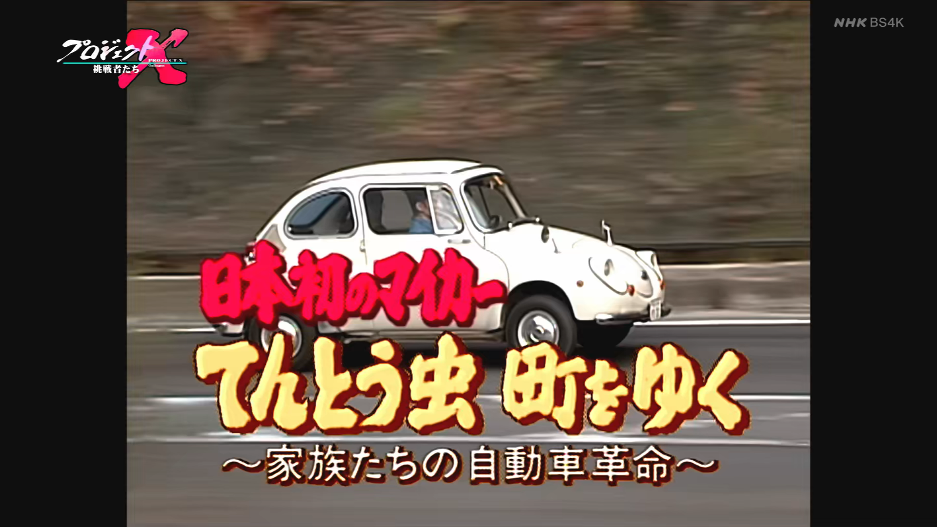 日本人の自動車への意識を覆した革命的な車、スバル360。昭和30年代、一軒家と同じほど高価だった自動車をサラリーマンでも買えるほど安価にし、「マイカー」という言葉を誕生させた事である。わずか360ccながら4人乗り。高級外車にも負けない走りとサスペンションを誇り、その風貌から「てんとう虫」と呼ばれた。自動車を庶民の足にしたいという技術者たちの執念が、不可能といわれた4人乗り軽自動車を完成させた。