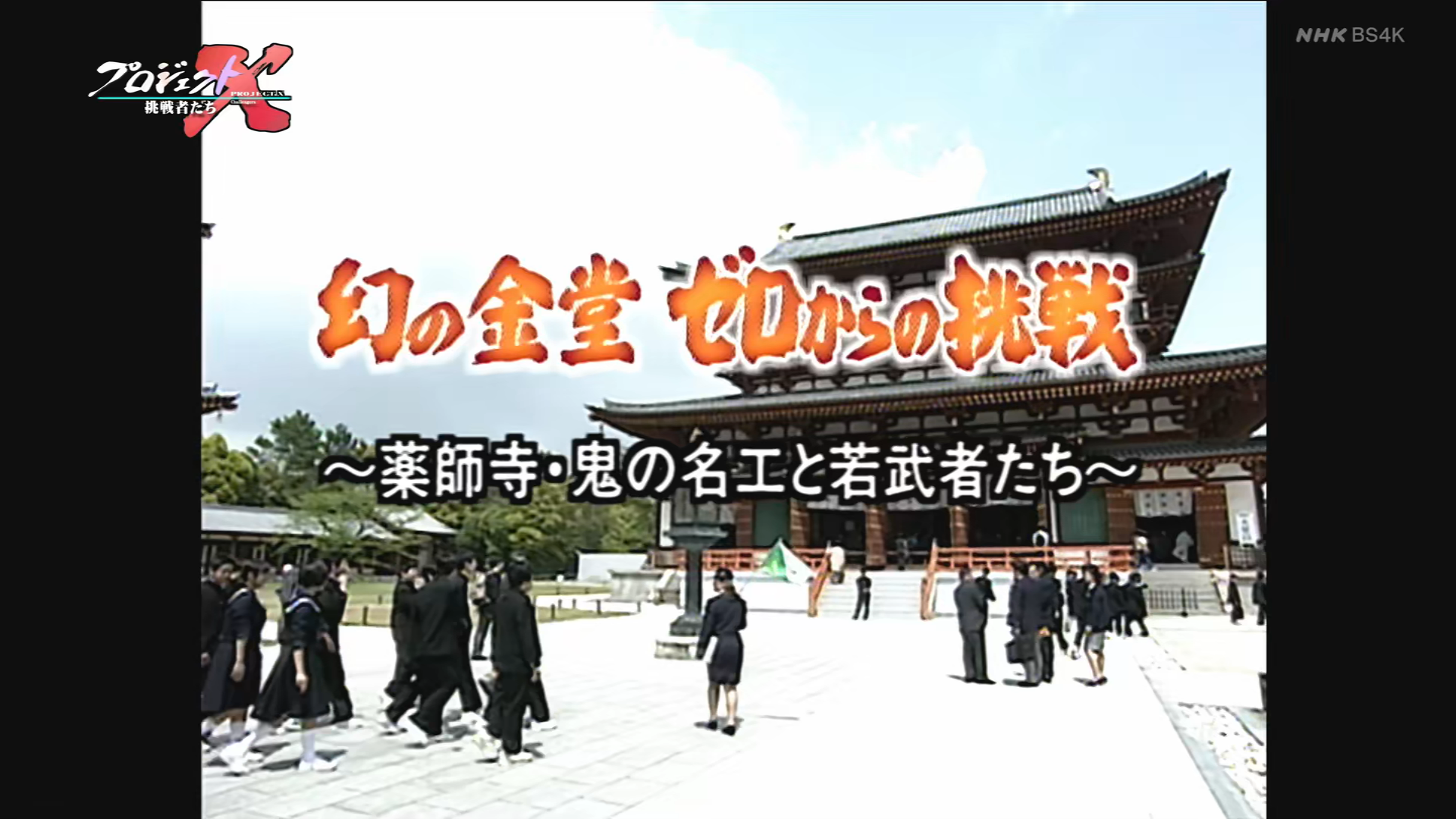 は長年の悲願だった。わずかな資料をもとに400年前の姿を復元する難工事。その総指揮をとったのは「鬼」と言われた宮大工•西岡常ーだった。全国から集まった若い大工たちをまとめて再建に挑む。彼らの多くが民家の仕事しか経験がなかったが、西岡は一つ一つ役割を与え、金堂をよみがえらせていく。