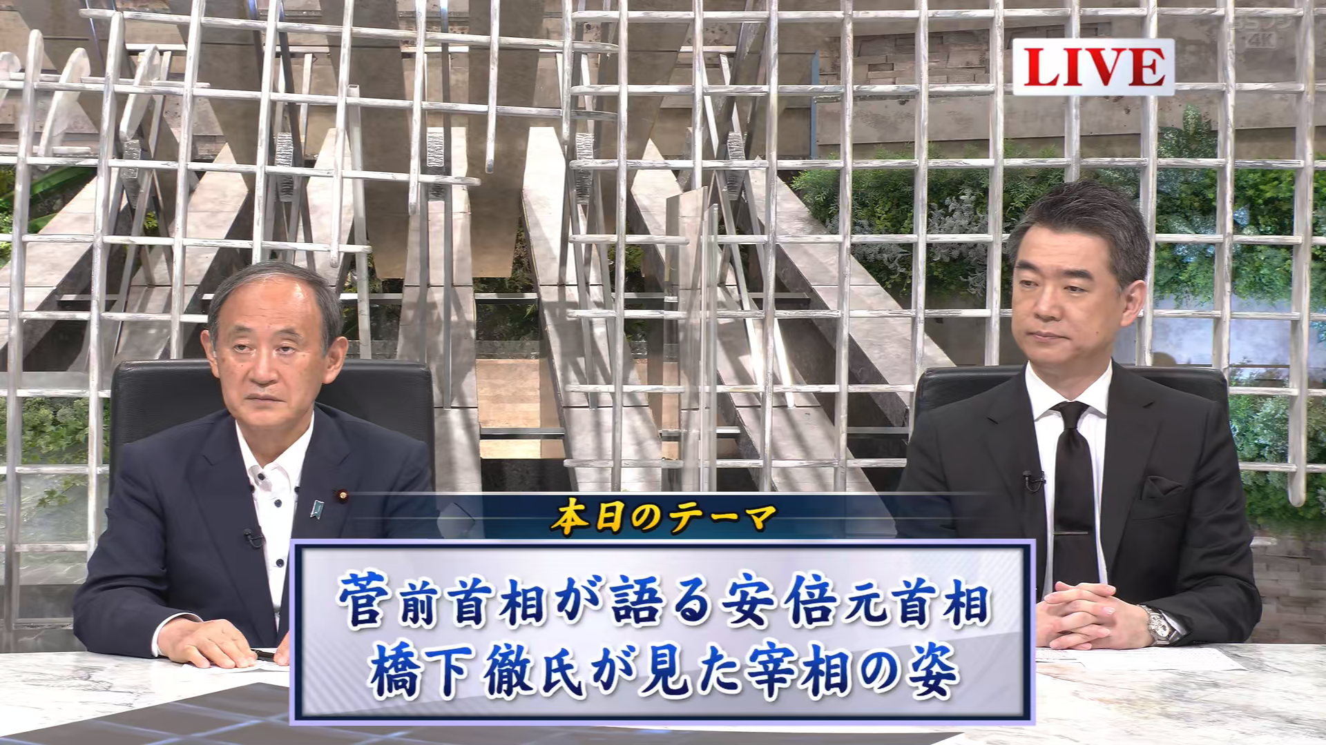凶弾に倒れた安倍元首相が遺したものとは…。7年8カ月にわたり官房長官として安倍氏を支えた菅義偉前首相と、年末の会談が恒例だった橋下徹氏に聞く◆4K制作番組